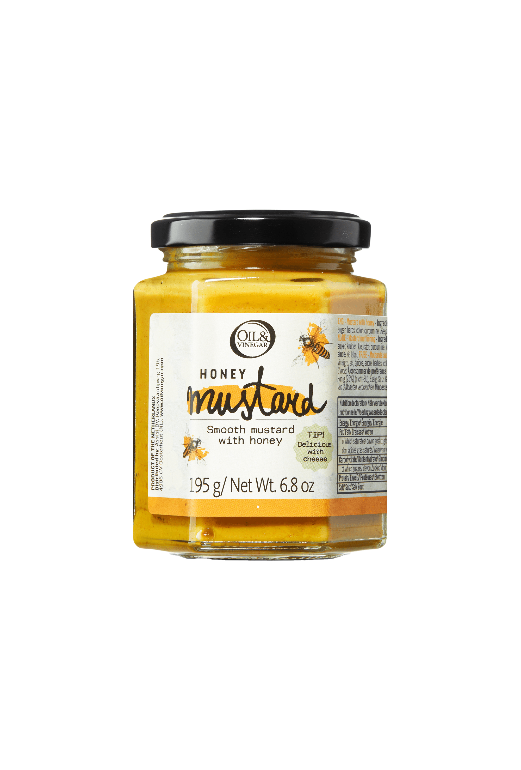 Mooie, gladde mosterd met 25% honing. Geweldig bij kaas en ham, maar ook een voortreffelijke vleesmarinade. Heerlijk bij:kaas en als marinade voor vlees (bijvoorbeeld fricandeau), maar ook een niet te...