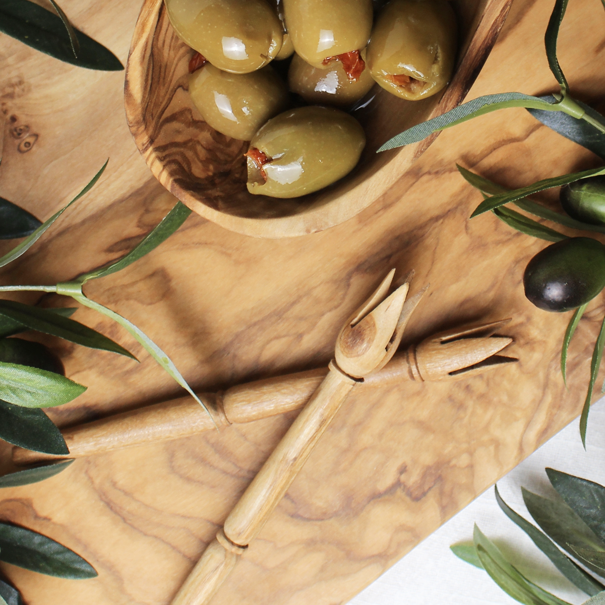 Ontdek de prachtige collectie servies van 100% olijfhout. Stuk voor stuk unieke en handgemaakte items. Niet alleen functioneel, maar ook een stijlvolle toevoeging voor elke keuken. Van serveerplanken die perfect zijn voor het presenteren van hapjes tot schaaltjes die ideaal zijn voor het serveren van olijven, dips of tapenades.