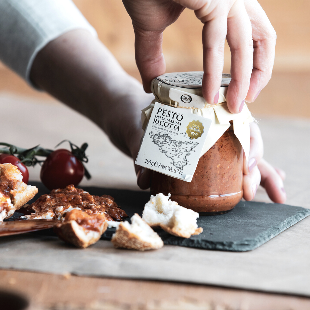 Nieuwe Receptuur! Italië in een potje: een rijke pesto met zongedroogde tomaten, basilicum en noten, rechtstreeks uit de heuvels van Piemonte. Pesto is vol van smaak en ideaal voor stevige...