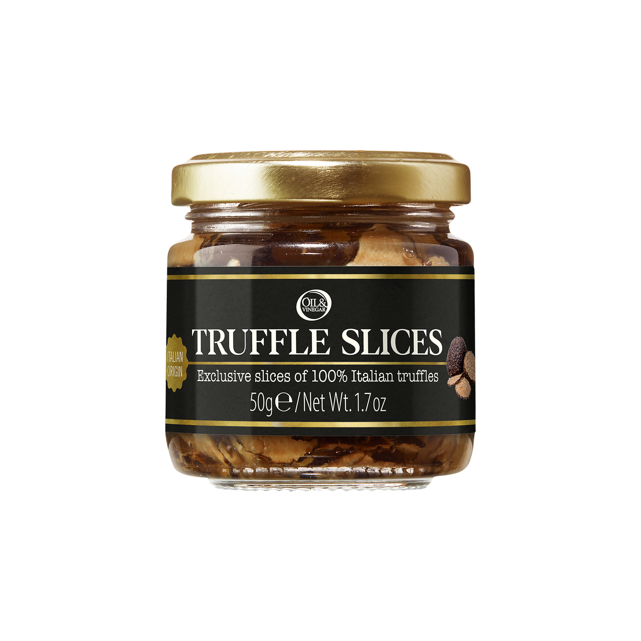 Dunne schijfjes Italiaanse zwarte zomertruffel in zonnenbloemoliegeven ieder gerecht een chique randje. Prachtig om te zien en tongstrelend door de verfijnde truffelsmaak. De zwarte zomertruffel wordt in Italië gevonden door truffeljagers en hun speciaal getrainde honden. Zomertruffels komen ook voor in Frankrijk, Zuid-Engeland en Duitsland. De beste truffels zijn echter afkomstig uit de kalkgronden van Umbrië, waar de truffels voor de Oil & Vinegar Carpaccio di Tartufo van het begin tot de lente tot laat in de zomer worden gezocht.