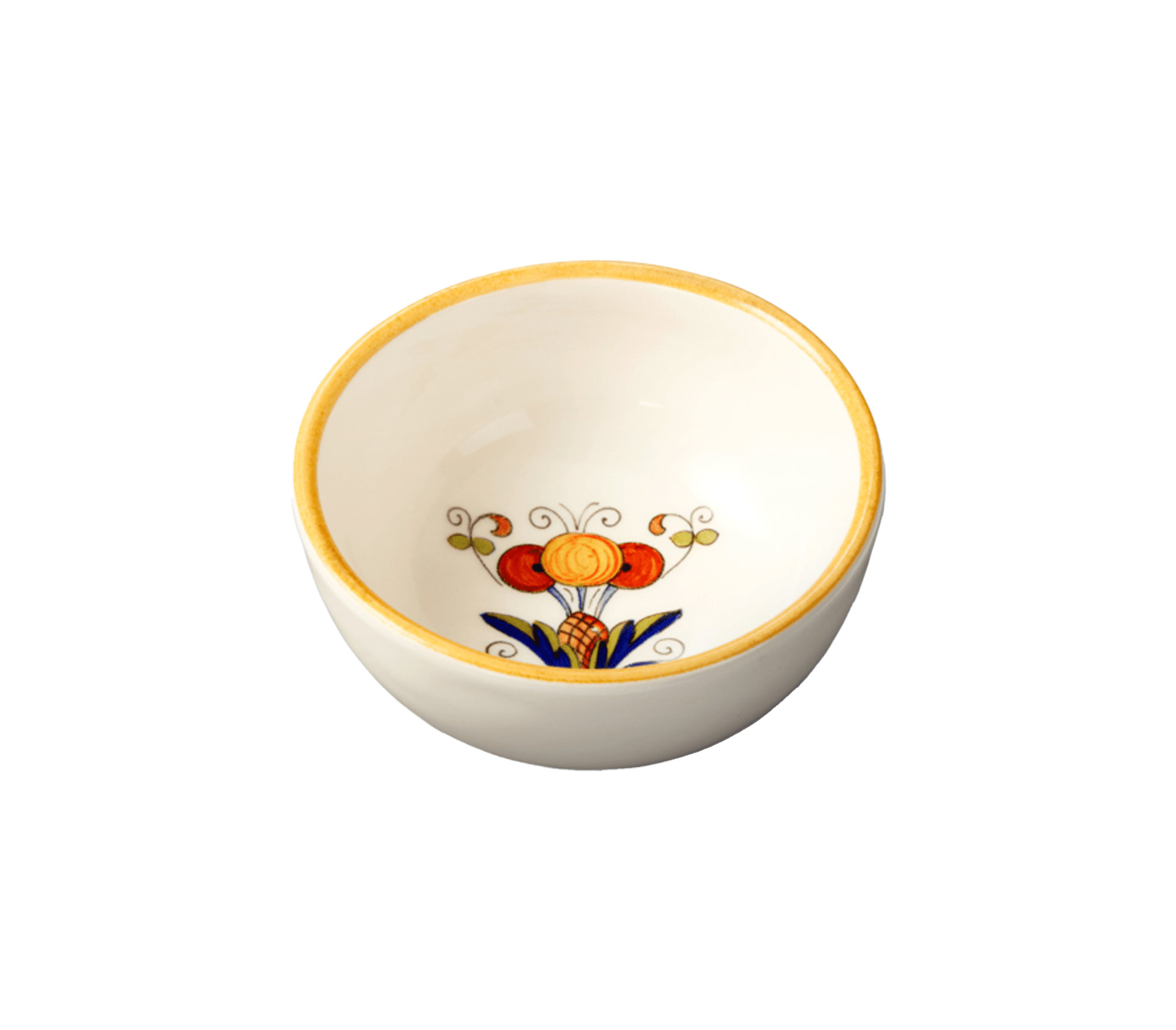 Dit dipschaaltje combineert leuk met de andere authentieke onderdelen van het Deruta style servies en is vaatwasser- en magnetronbestendig.