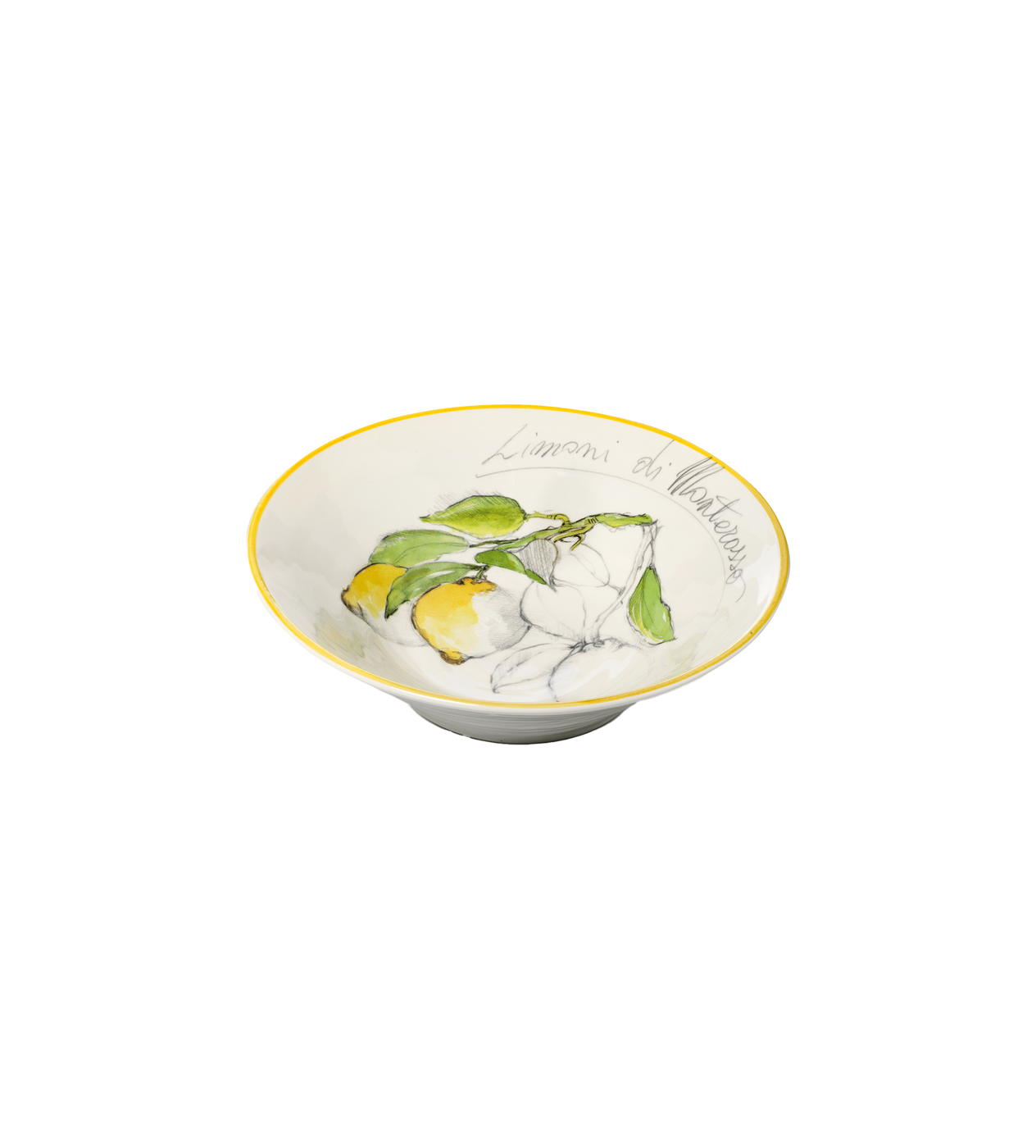 Handgemaakte saladeschaal met kleurrijk en fris citroenmotief. Geproduceerd in Civita Castellane, vlakbij Rome. Een eyecatcher voor op tafel!