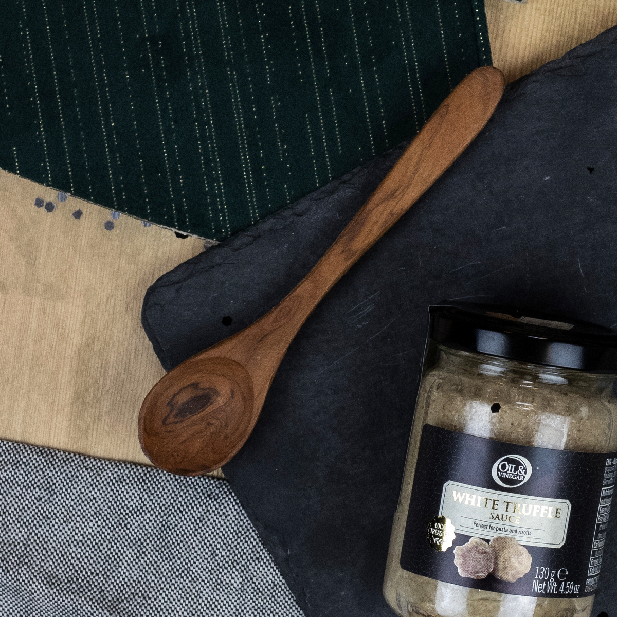 Deze lepel is slechts één van de onderdelen uit onze unieke handgemaakte Tunesische olijfhouten collectie. Voor het stijlvol presenteren van dips of chutneys bij hapjes, appetizers of een kaasplank. Houdt u van een exclusieve maar tegelijkertijd natuurlijke aangeklede tafel? Dan zijn accessoires van olijfhout een goede keuze. Deze loofhoutsoort komt van de kleine ietwat gedrongen groeiende olijfboom, die zorgt voor een spannende en warrige houttekening van donkere aderen in een verder middenbruine kleur. Door die speling van de natuur is ieder item uniek te noemen. Dit lepeltje is 14,5 cm lang en handgemaakt in Tunesië. Geschikt om de heerlijkste chutneys, dips enzovoort geheel in stijl op tafel te zetten.