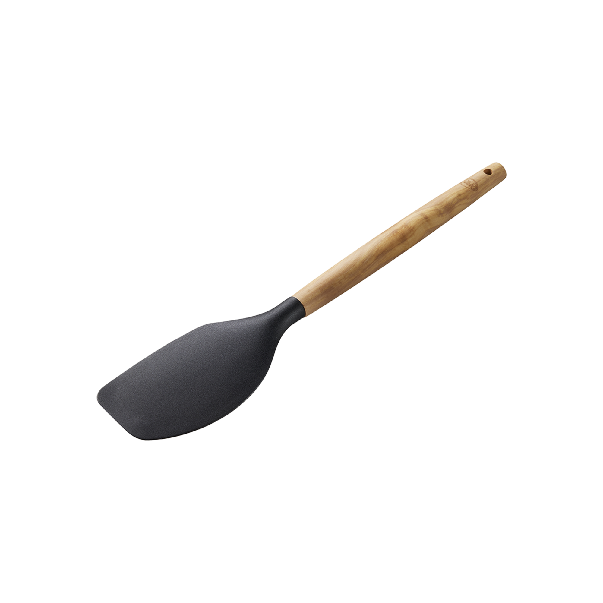 Haal het beste uit je gerechten met deze stijlvolle pannenlikker. Ideaal om pannen, potten en schalen mee te reinigen en het laatste beetje saus, beslag of deeg eruit te schrapen. Dankzij de olijfhouten handgreep in combinatie met het zwarte siliconen is deze pannenlikker niet alleen functioneel, maar ook een prachtige toevoeging aan iedere keuken.