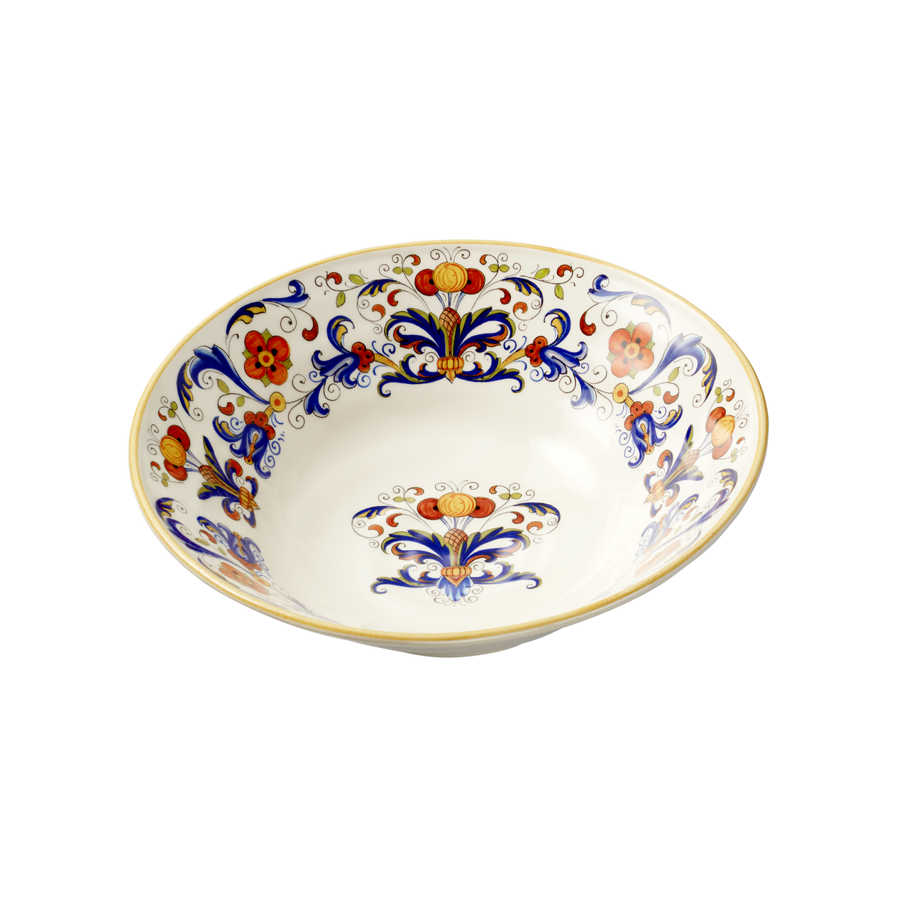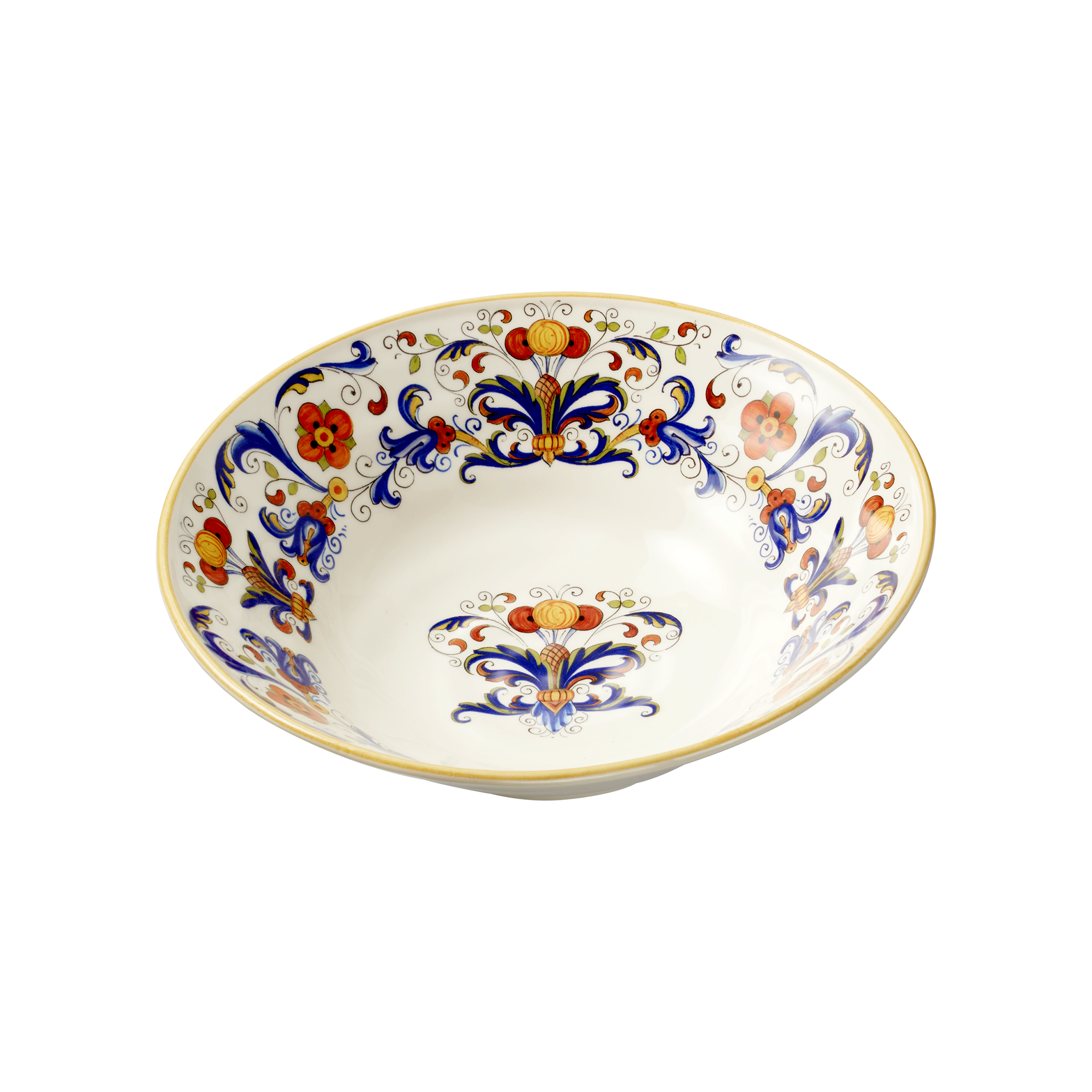 Ideaal voor het serveren van een grote salade of pasta voor de hele familie. Deze schaal combineert leuk met de andere authentieke onderdelen van het Deruta style servies en is vaatwasser- en magnetronbestendig.